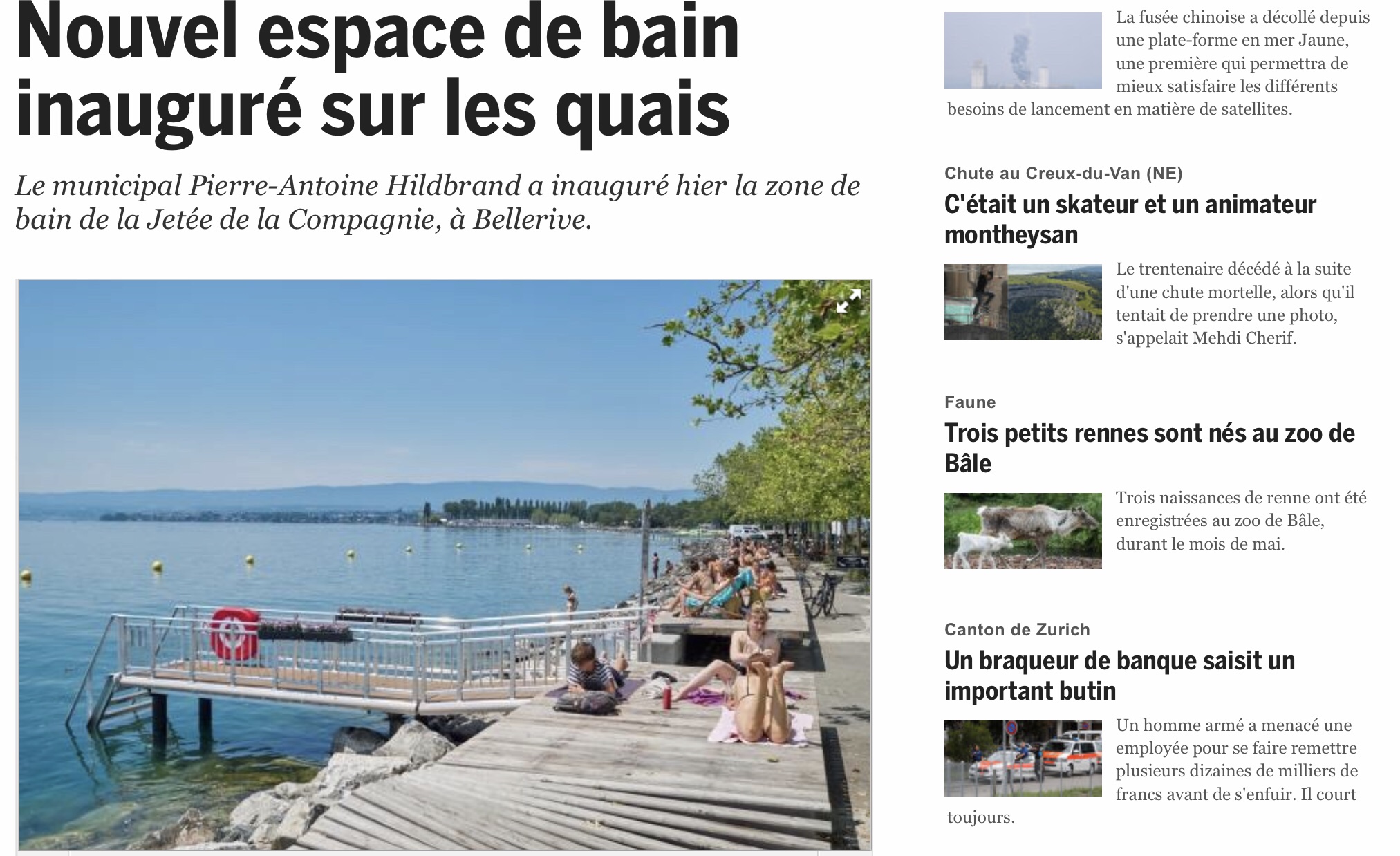 Le municipal Pierre-Antoine Hildbrand a inauguré hier la zone de bain de la Jetée de la Compagnie, à Bellerive. Lire l’article sur le site de 20minutes.ch : www 20minutes ch… Lire la suite